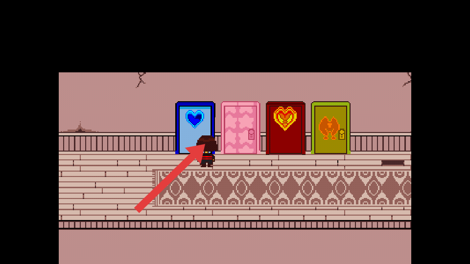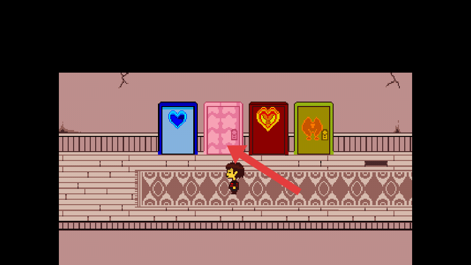 1、朝着箭头指向的粉色门移动,靠近后与之互动,可进入对应的房间,探索屋内场景,推进游戏剧情。