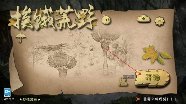 1、打开挨饿荒野游戏界面,点击右下角的开始按钮进入游戏。