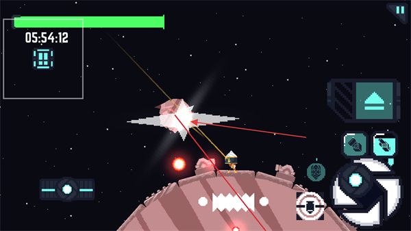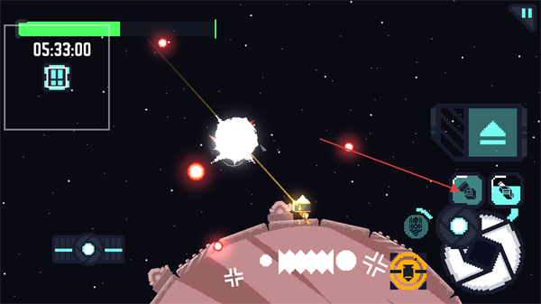 2、躲避敌方激光、弹幕等攻击,利用星球地形如凸起遮挡伤害,维持生存。