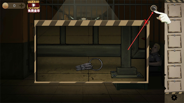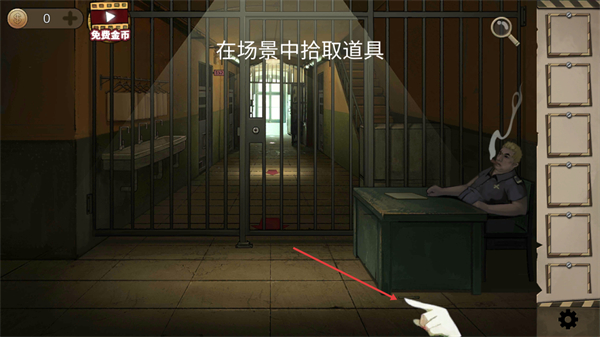 1、在该监狱逃脱场景中,根据提示在场景中拾取道具,点击桌子下掉落的笔,拾取场景内的道具以推进逃脱进程。