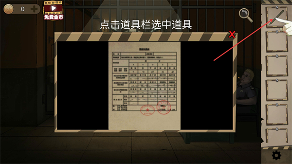 4、根据得到的提示用桌子上的笔扫出门后的钥匙,选中道具栏里的笔道具,按照指引操作该道具,扫出门后的钥匙以获取关键逃脱道具。