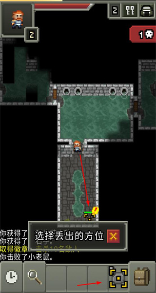 1、在地下迷宫中与敌人战斗,可选择丢出道具的方位,击败敌人获取徽章、种子、药剂等物品,推进地牢探索进程。