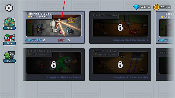 1、在游戏主界面点击FindtheBlocks模式,进入该模式的准备等待场景。