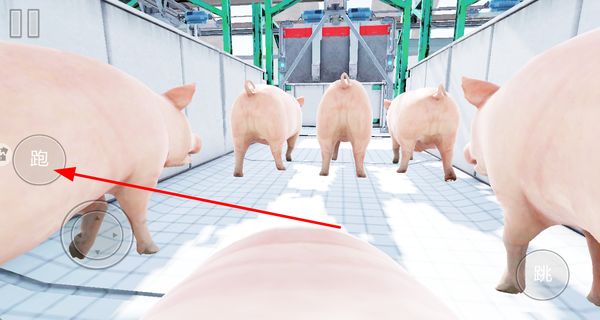 4、点击跑按钮,让猪猪快速奔跑,巧妙躲避各类危险,在场景中灵活穿梭,顺利完成逃亡任务,大幅提升游戏体验。