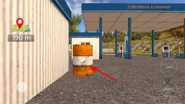 3、注意场景中的橙色油桶等物体,这些物体可能是互动元素或场景线索,靠近后可获取资源或触发任务。