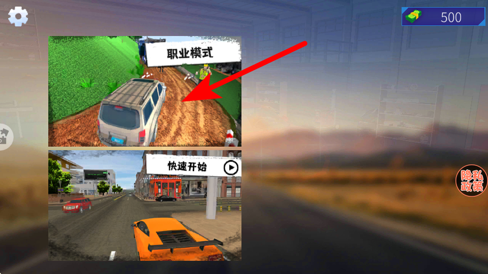 1、进入游戏界面后,选择职业模式并点击,这是进入对应驾驶关卡的关键操作,点击才能开启职业驾驶任务。