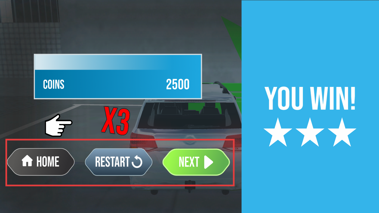 4、完成关卡后可获得2500金币与三星评价,能点击“HOME”回主界面、“RESTART”重玩或“NEXT”进下一关。