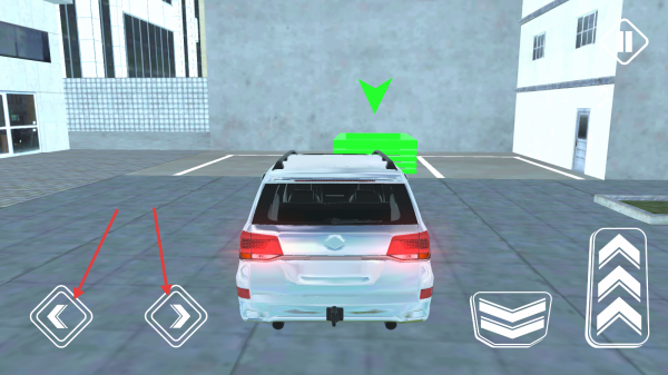 3、借助左侧左右转向按钮调整车辆方向,精准对准绿色的目标区域,保证停车的位置准确。