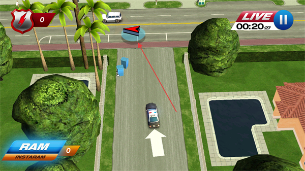 1、点击TOUCHSTART区域,启动警车,跟随箭头指引前进。