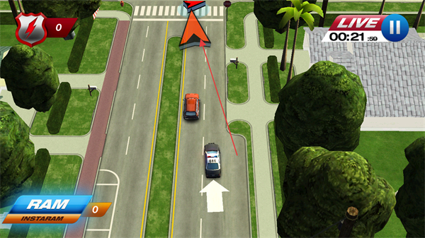2、驾驶警车追赶橙色目标车辆,沿道路保持追踪。