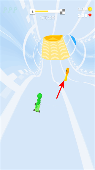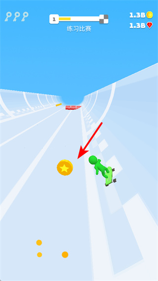 2、在滑行过程中操控角色移动至金币位置,这是积累资源的基础操作,接触金币后可获取对应的奖励,提升成长进度,助力后续竞赛体验。
