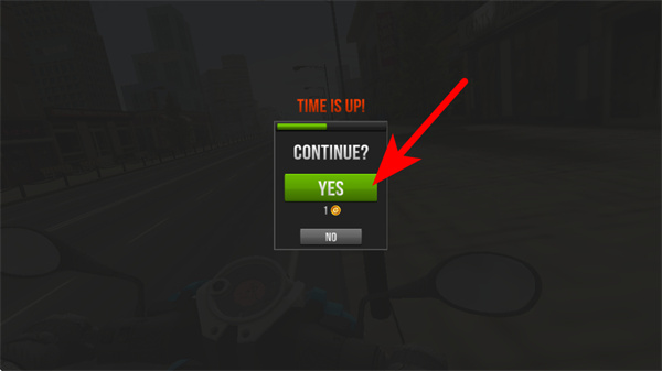4、在时间耗尽界面点击YES按钮,这是继续任务的重要操作,消耗资源后可重新开启当前驾驶任务,再次尝试完成通关目标。