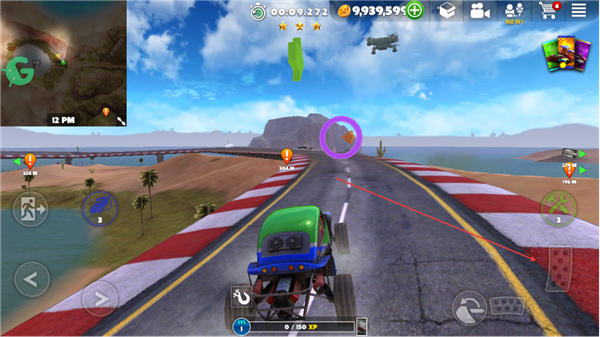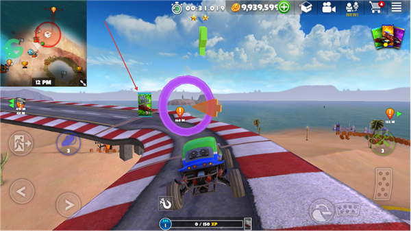 4、驾驶车辆穿过紫色圆环,完成赛道阶段的目标,推进游戏进程。