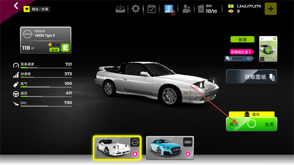 1、新手玩家进入游戏后可以先进入车库挑选车辆进行购买,然后前往赛事进行比赛。