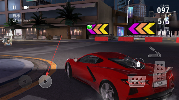 3、在车辆通过弯道时,点击左下角的箭头控制车辆进行转向。