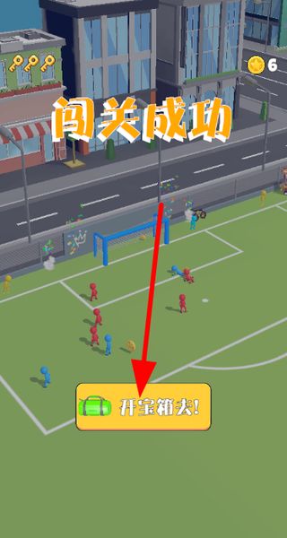 3、成功进球后顺利通关,点击开宝箱按钮,获取丰厚的金币、钥匙等奖励,用于解锁更多精彩的游戏内容。