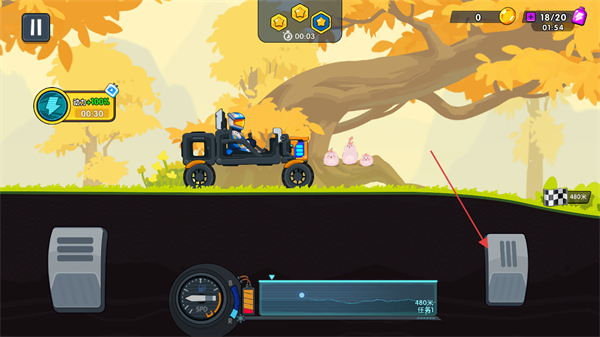 2、点击或长按右下角的踏板启动车辆前进,左下角的踏板控制车辆刹车。