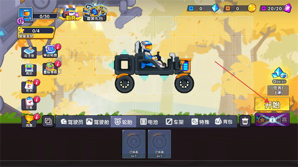 1、进入游戏主页面,点击右下角的开始按钮进入游戏关卡。