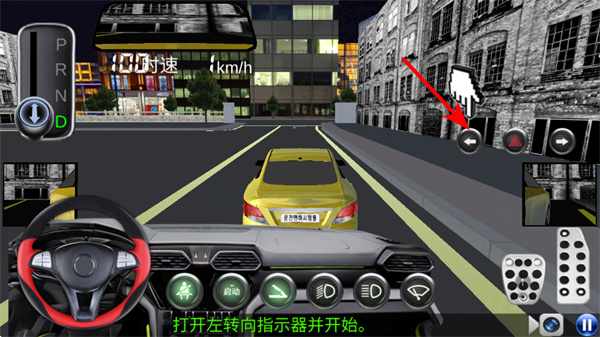 2、游戏中在驾驶准备阶段,点击界面右侧的左转向按钮,开启左转向灯,为转向操作做信号准备。