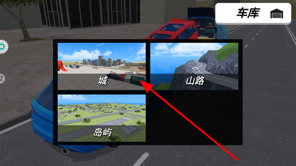 1、进入游戏后,可选择不同的场景,城、山路、岛屿等,挑选心仪的场景开启赛车驾驶之旅,进入相应的赛道环境。