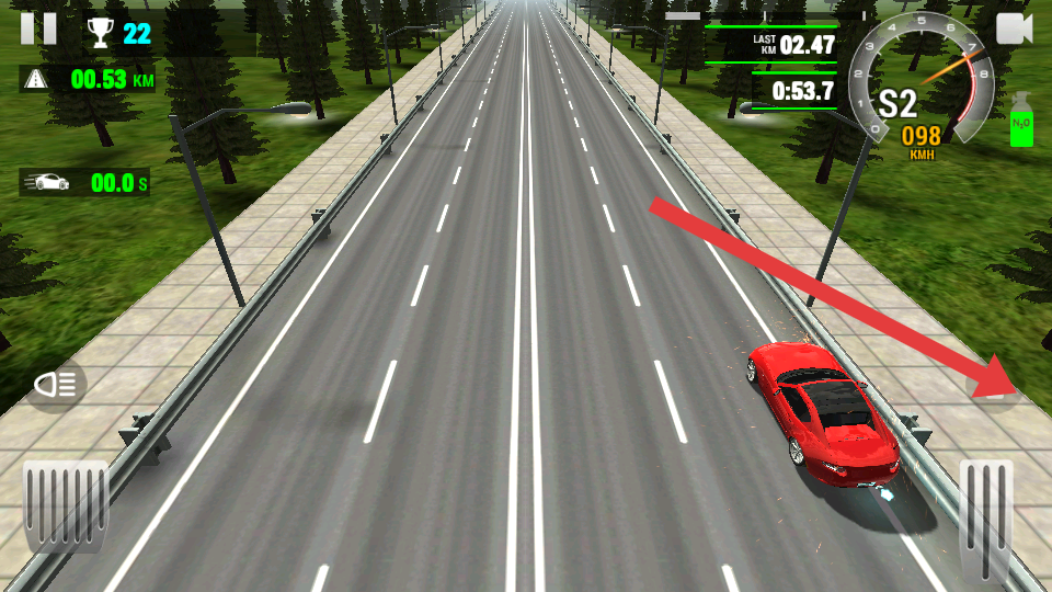 2、合理使用氮气功能,当屏幕下方的氮气条累积满格后,点击NITRO按钮触发加速,优先在直道或超车时使用。