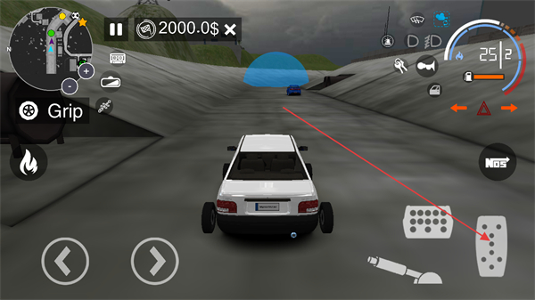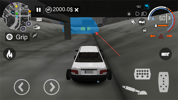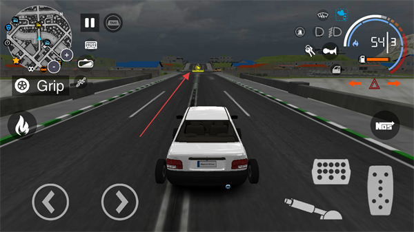 2、点击右侧油门键加速,追赶前方蓝色车辆。