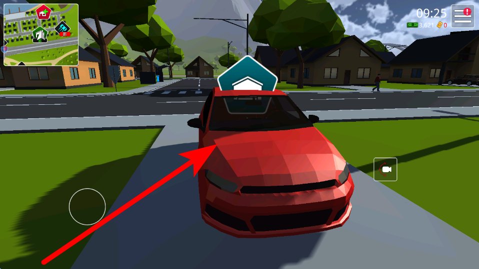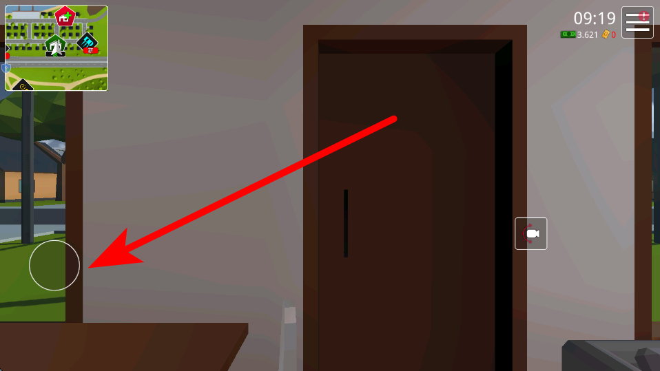 1、首先移动出门,在室内通过操作移动相关按钮,控制角色移动,从室内走向室外,为后续进入车库等操作做好准备。