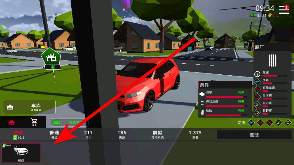 3、接着选择汽车,在车库中可以选择挑选不同的汽车,根据自己的喜好确定要驾驶的汽车,为驾驶做好充分准备。