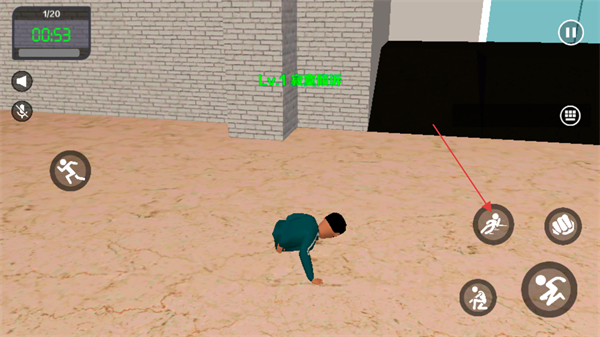 4、右下角的滑铲键在关键时候非常有用,点击后控制角色可以从狭小的缝隙中传过。