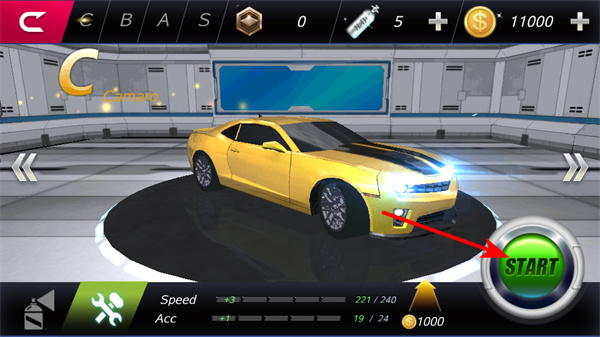 1、在赛车游戏中,点击START按钮开始赛车挑战,这是开启竞速之旅的关键操作,点击后可进入赛道展开比赛。