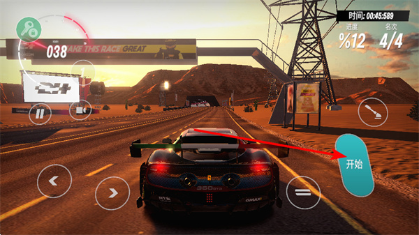 1、启动拉力地平线的游戏,点击开始的按钮,进入赛车游戏的比赛的场景。