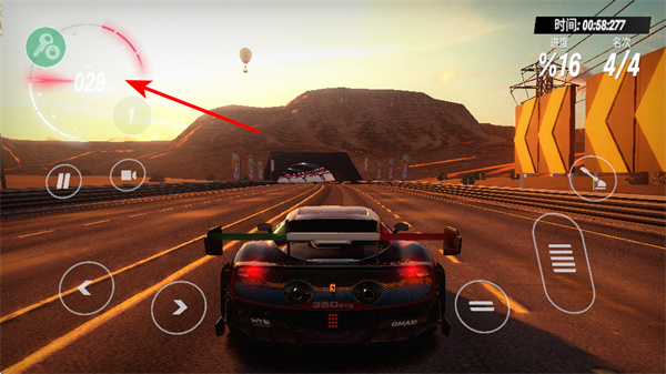 2、关注速度,在游戏过程中,留意速度表的数值变化,了解赛车当前行驶速度。