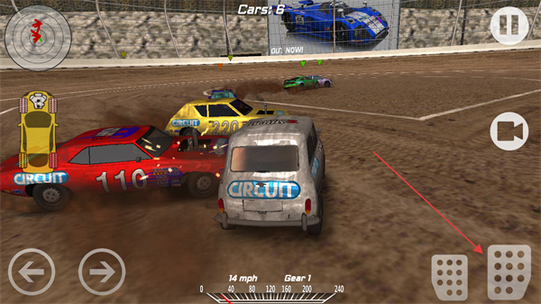 4、利用右侧操作区域控制赛车加速,持续冲撞其他赛车,在混乱中提升排名。