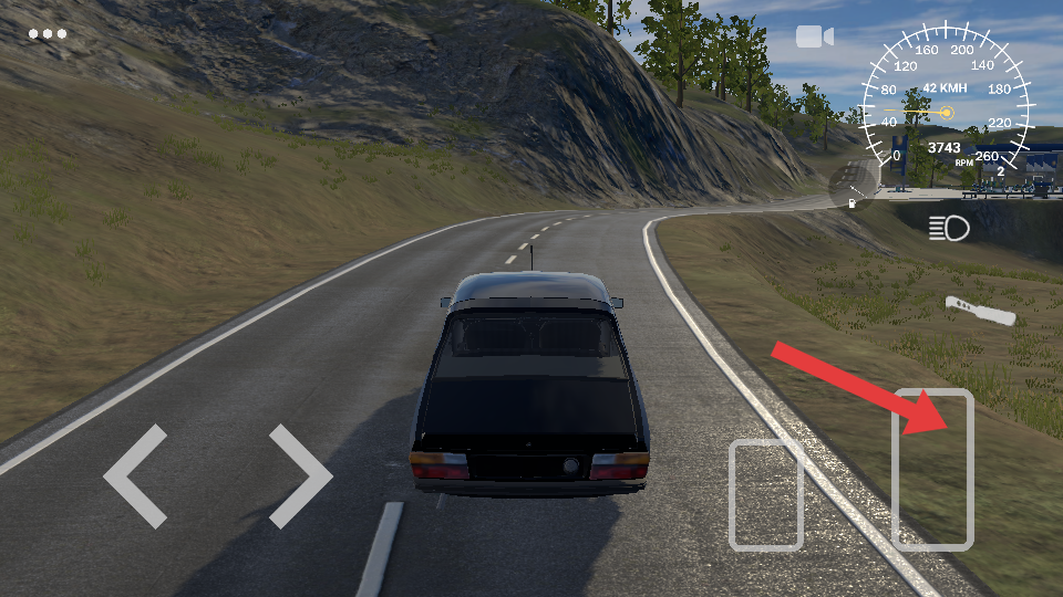 1、在公路行驶时,点击箭头指向的右侧油门按钮,可控制车辆加速前进,让车辆在公路上保持合适的行驶速度,顺利前行。