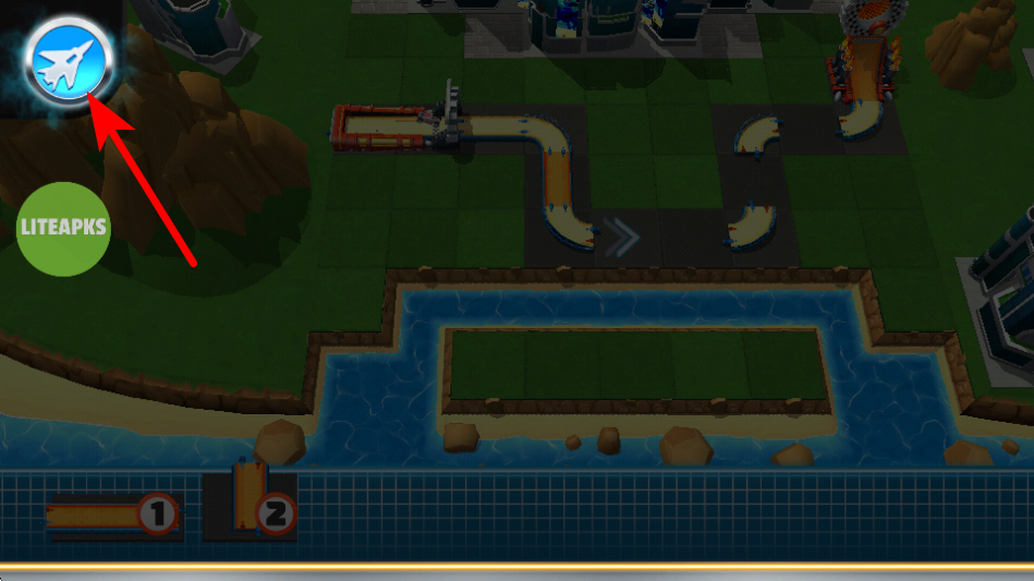 4、进入关卡场景后,观察当前车辆的位置与场景内的轨道组件,操控车辆向轨道组件的方向移动,以搭建完整的行进路线。