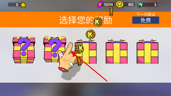 4、选择比赛奖励,比赛结束后,在奖励选择界面中,选择含有金币的奖励礼盒,积累游戏资源。