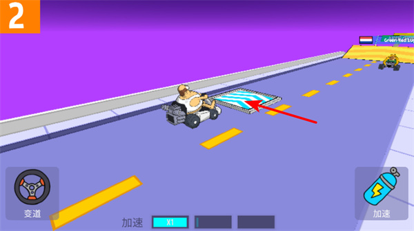 2、利用赛道加成,驾驶赛车通过蓝色加速带,获取赛道的速度加成,增强竞速优势,拉开距离。
