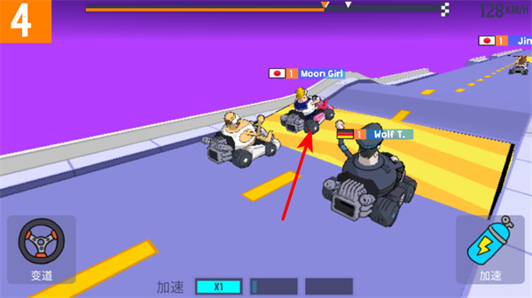 左侧方向盘图标用于变道,控制赛车左右移动躲避障碍或抢占路线;驾车腾空时,该图标变为空中特技图标,按下可触发特技d 动作并增加分数。