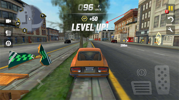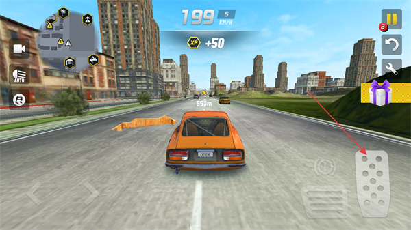 1、进入城市驾驶地图中,通过右下角的油门踏板控制车辆前进,刹车踏板控制车辆倒退急停操作。