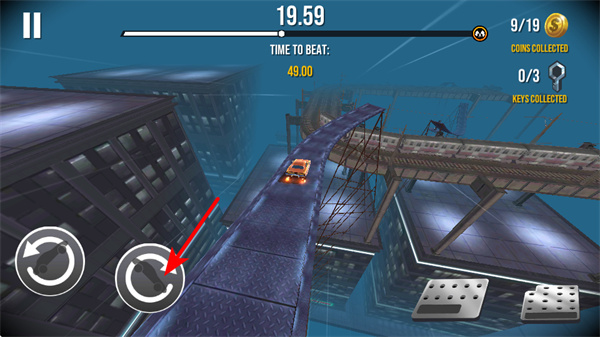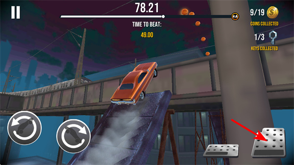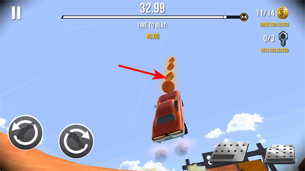 2、在车辆跳跃时瞄准空中金币,可收集金币提升关卡评分,这是积累资源的核心操作,收集时需把握车辆的跳跃轨迹金币排列。