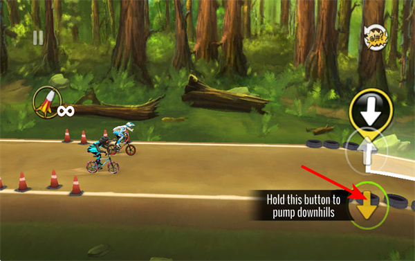 2、长按向下按钮,可在下坡时泵动车身提升速度,这是优化骑行节奏的核心操作,使用时需根据地形变化及时调整。