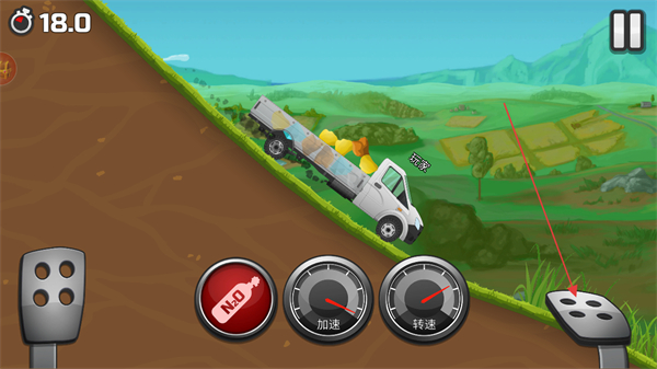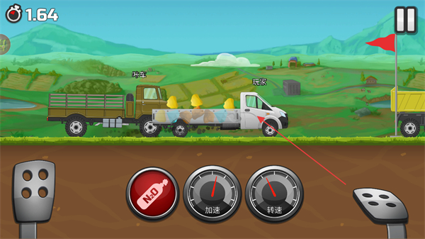 1、操控卡车,利用加速,转速按钮控制车辆,装载货物后向终点行进。