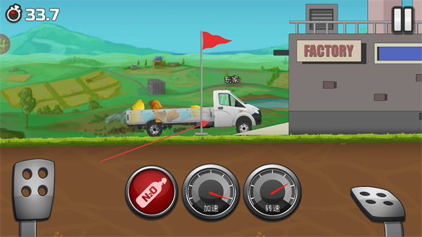 3、继续驾驶卡车,靠近终点旗帜,向FACTORY方向推进。