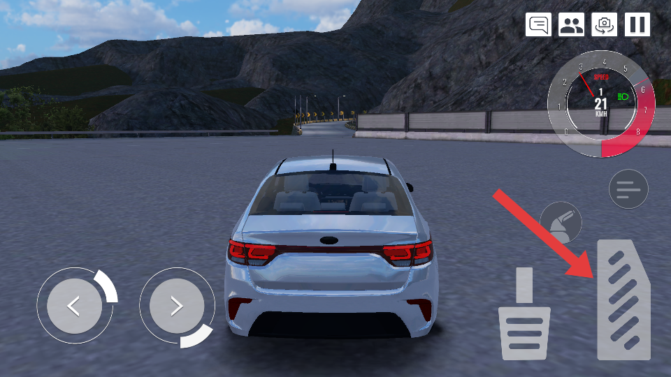 1、行驶时,点击右侧油门按键,可控制车辆加速,助力在开阔路面提升车速,快速前行。