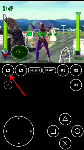 3、按照箭头指引,点击L2按键,可触发角色的特定技能,提升战斗能力。