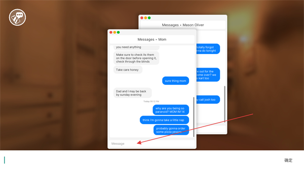 2、通过手机消息界面与家人的对话获取防范提示,这些信息隐藏着可疑人员行为规律和房屋防御弱点。