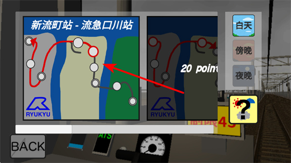 1、在列车模拟游戏中,查看路线地图,熟悉新流町站流急口川站的行驶路线,规划行驶路径基础,确保运行。