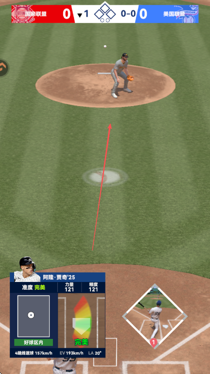 2、作为击球手时,观察投手投球,在合适时机点击或滑动屏幕进行挥棒击球,注意下方准度,力量等指标。