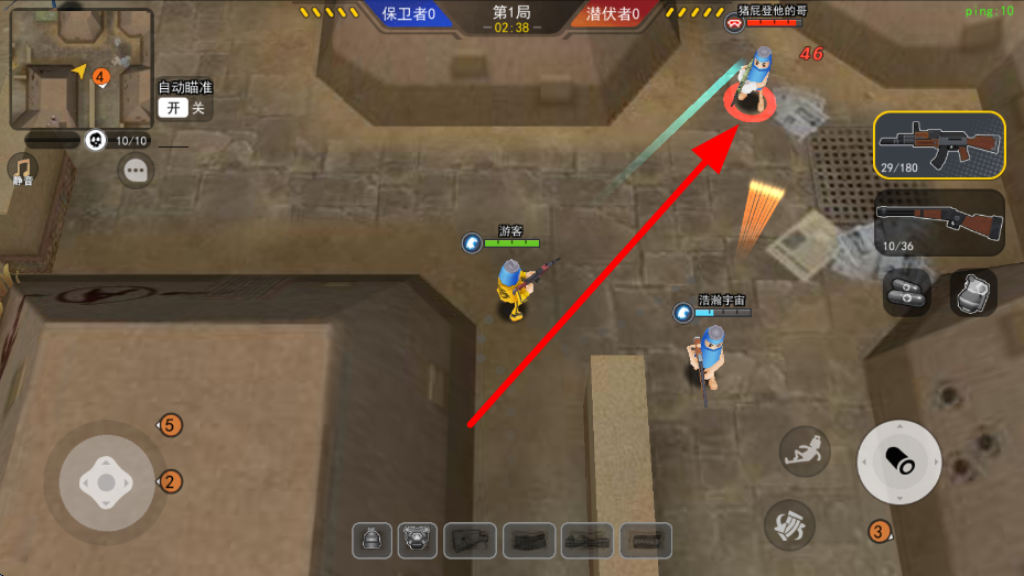 4、玩家进入战斗后,操控角色移动,利用所选武器对敌人发起攻击,在战斗过程中,注意观察敌人位置,灵活调整射击角度与时机,击败敌人。