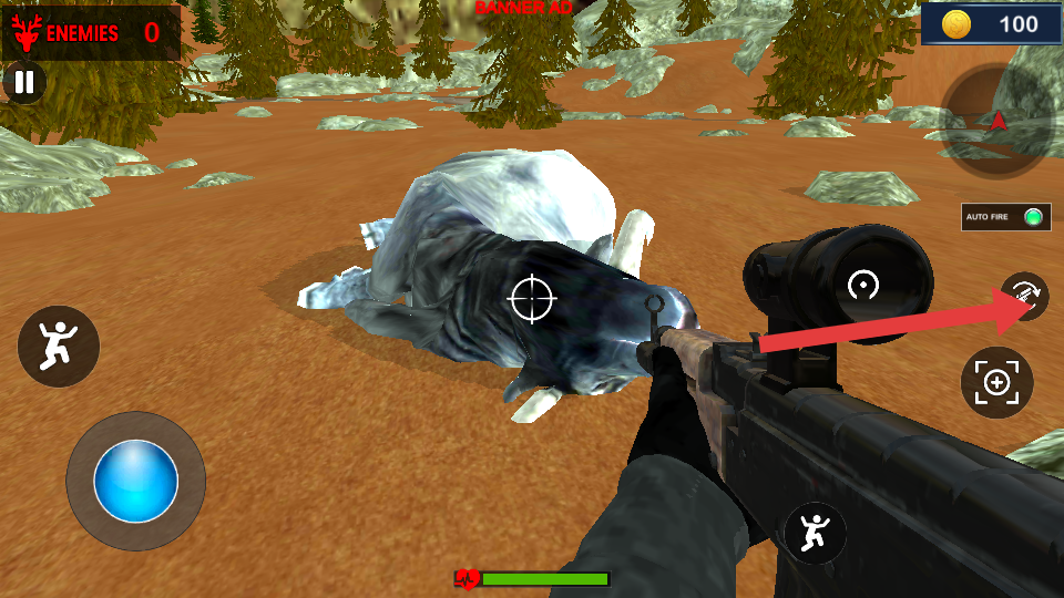 1、基础狩猎操作:安装游戏后进入主页面,点击狩猎即可开始,通过喇叭声音判断猎物方向,右侧操作栏支持左右滑动调整视角,左侧为射击按钮。